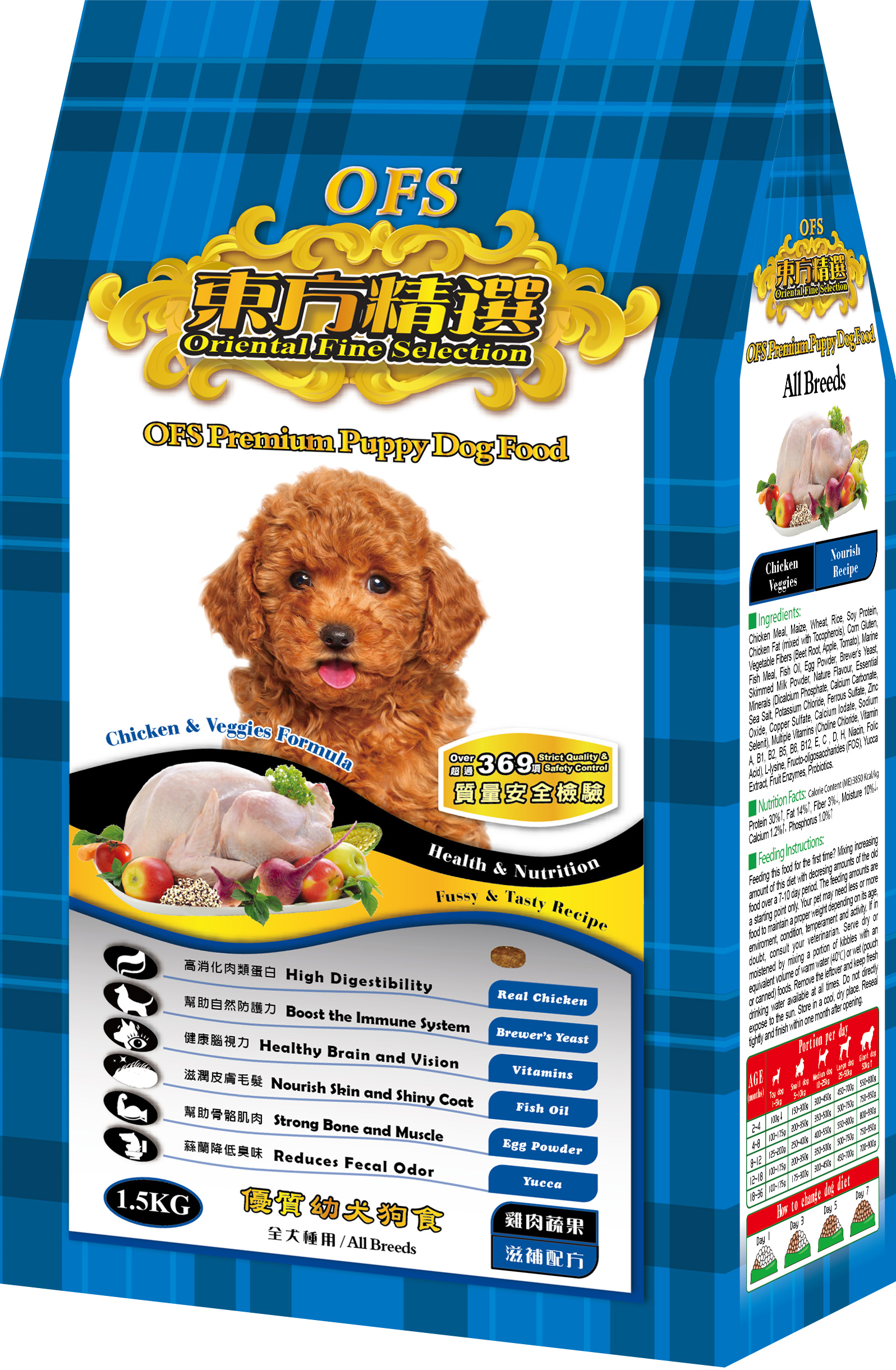 ♦ Nutrition Facts:Protein 30%↑, Fat 14%↑, Fiber 3%↓, Moisture 10%↓, Calcium 1.2%↑, Phosphorus 1.0%↑