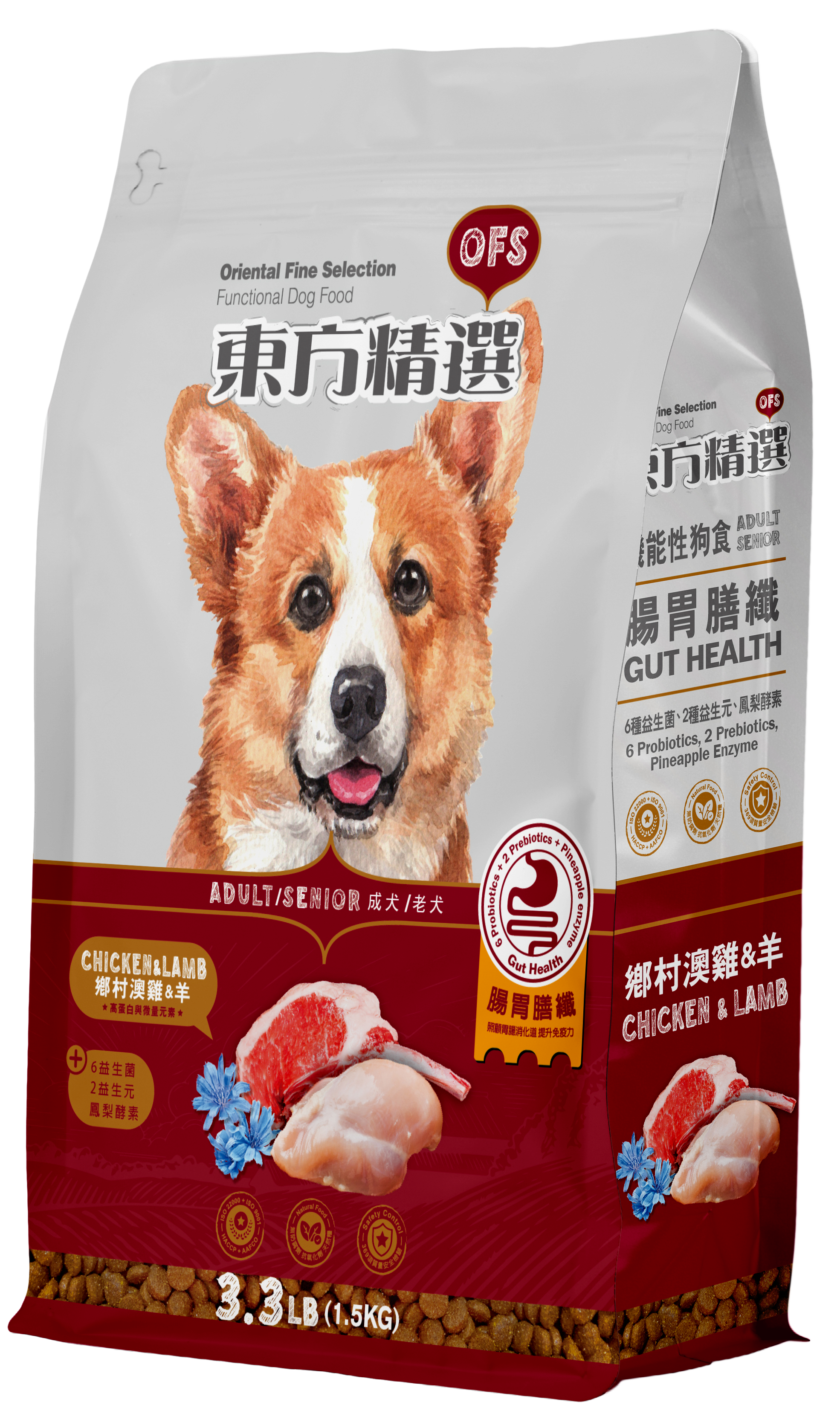 ♦ Reference : Omega6 1.2%, Omega3 0.2%, Sodium 0.1%, Vitamin A 10,000 IU/kg, Vitamin D 600 IU/kg, Vitamin E 60 IU/kg, Glucosamine 300ppm, Iron 100mg/kg, Zinc 120mg/kg, Probiotics 6x107CFU/kg.